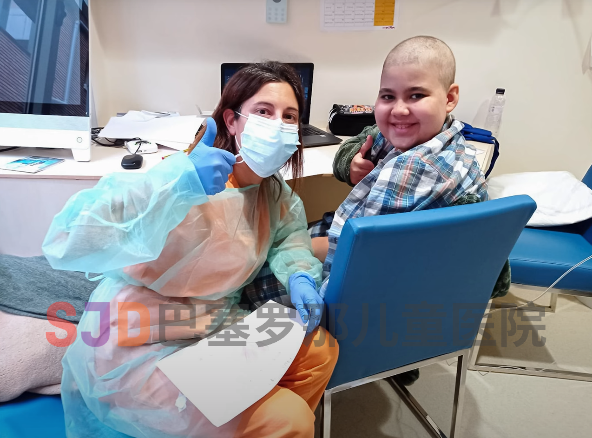 在进行非亲属供体移植前,我们会进行严格的检查,以明确患者体内是否存在排斥供体细胞的抗体。如果存在,则必须通过治疗消除这些抗体。我们很快地找到了匹配的捐献者,但在移植前,我们必须进行脱敏治疗以消除排斥的抗体,之后他才能安全地接受移植。——SJD小儿血液科专家Maria Trabazo del Castillo医生